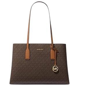 Discover the elegance of the Michael Kors tote bag, featuring a sophisticated brown and tan color palette. Crafted with a structured design and signature MK monogram print, this tote combines style and practicality.