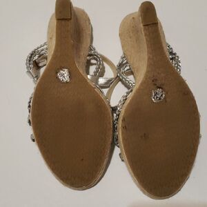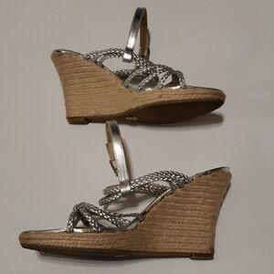 #Christmas #holiday #wedge #metallic #silver #fancy #michael kors #braided #party shoe #comfortable #pre-owned #box #strappy #macy #wedge #summer #dressy #casual #satin #palm beach