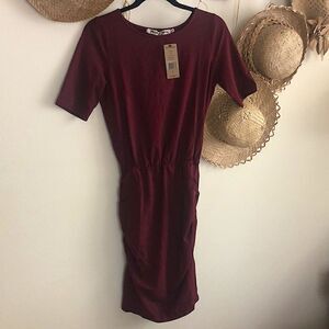 MICHAEL STARS Ruched Body-Con Dress Pinot XS NWT