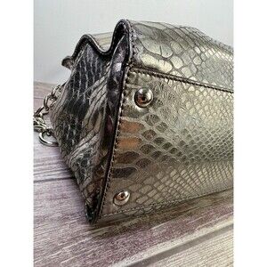 The MICHAL KORS Large Hamilton Gray Luxury Embossed Leather Satchel Shoulder Bag is a stylish and versatile accessory designed for women. This large satchel features a luxurious exterior made of leather with a signature animal print pattern, accented with gold hardware and the iconic Michael Kors logo.