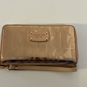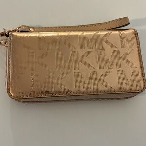 MICHARL KORS JET SET GOLD METALLIC PHONE CASE WRISTLET WALLET