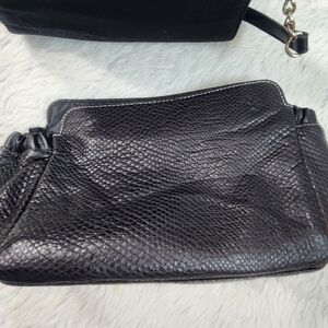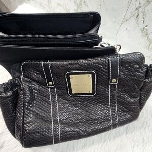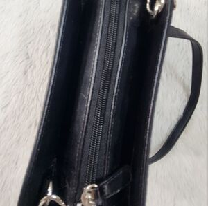 Black base bag is 8 x 6 inches. Single handles is black/silver. Base bag is zip top, and in good condition. Roxy shell is black, in good condition.