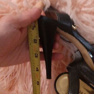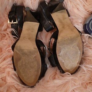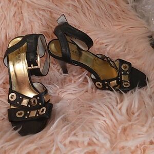 🔥MICHEAL KORS🔥 BLACK LEATHER GOLD STUDDED LOGO HEELS W/ ANKLE STRAP SIZE 7