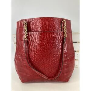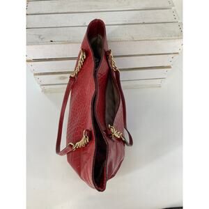 MICHEAL KORS, LARGE RED LEATHER ANIMAL PRINT SHOULDER BAG