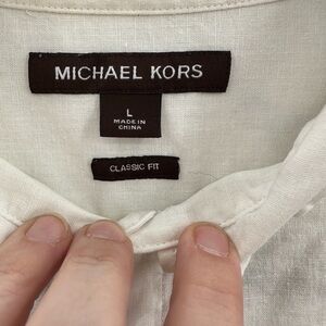 MICHEAL KORS classic fit men’s linen blend white short sleeve top. Great preowned condition