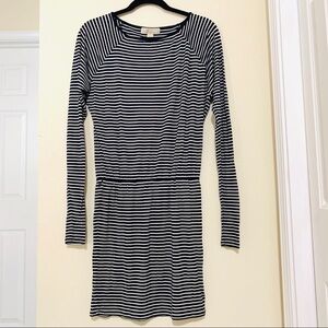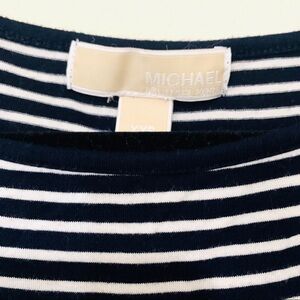 Textural stripes amp up a cool and classic Michael Kors dress that looks great with accessories.