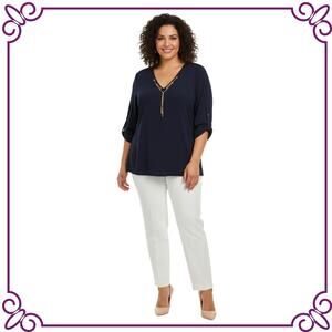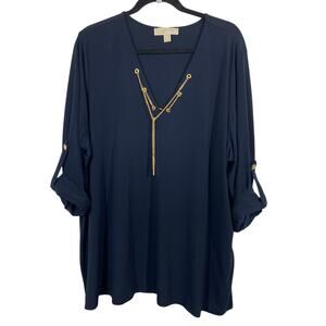 MICHEAL Kors Blue Luz Matte Jersey Chain Lace-Up V-Neck Tunic Blouse 3X