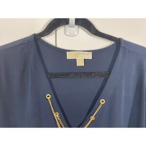 MICHEAL Kors Blue Luz Matte Jersey Chain Lace-Up V-Neck Tunic Blouse