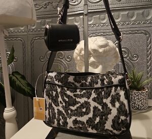 MICHEAL Michael Kors Jet Set Leopard Black and White Patterned Shoulder Bag