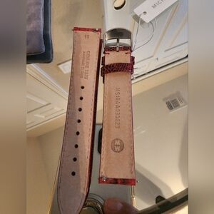 features a stainless steel buckle with signature logo engraving and is interchangeable with 18mm watches.