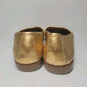 MICHELLE D SIZE 7 Remmy Leather Ballet Flat Gold Square Toe