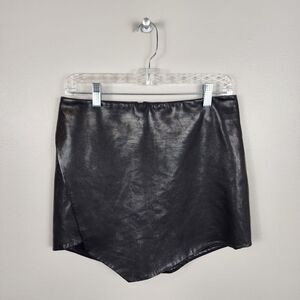 MICHELLE MASON | Leather Mini Skirt With Slit Sz 4 Black Asymmetrical Zip Staple