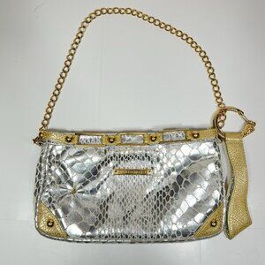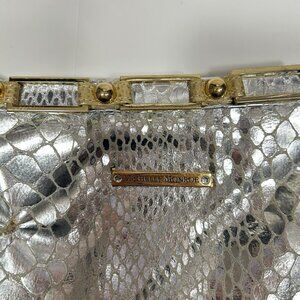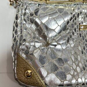 MICHELLE MONROE Croc Embossed Silver Gold Convertible Clutch Bag Key Chain Flaw