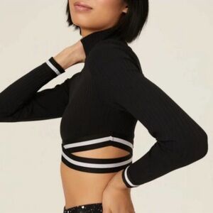 MICHI Apex Ribbed Long Sleeve Top Criss Cross Strap Cropped Black