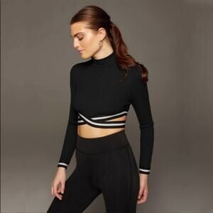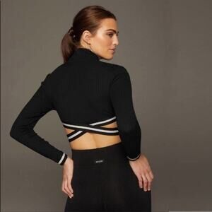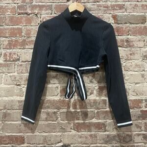 MICHI Apex Ribbed Long Sleeve Top Criss Cross Strap Cropped Top Size Large