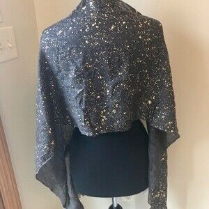 MICKEY LONDON Scarf Gold Metallic Splatter Gray Galaxy Star NWT