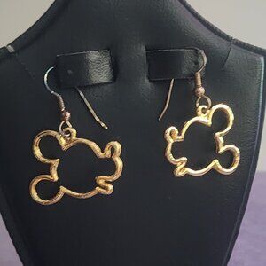 MICKEY MOUSE Head Pierced Dangle Drop Earrings Goldtone Disney