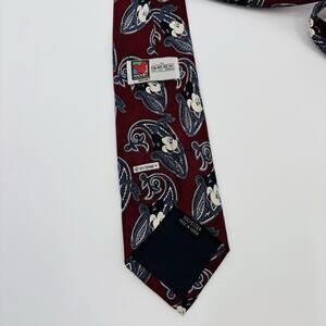 This vintage Mickey Mouse maroon and gray polyester tie by Balancine The Tie Works is a classic, novelty accessory for men. Made in the United States, this tie features the beloved Disney character Mickey Mouse in a multi-color design, perfect for adding a touch of fun and nostalgia to any outfit. The tie is of classic length and width, making it a versatile piece that can be worn for various occasions. Ideal for Disney enthusiasts or those looking to add a unique flair to their wardrobe.