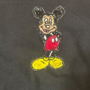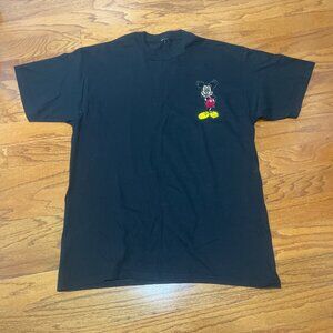 MICKEY Sequins/Beads Logo Short Sleeve Cotton Feel Black Tee Shirt Size Unknown