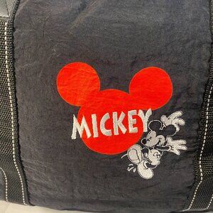 This Mickey Unlimited embroidered Disney black duffle bag is a medium-sized travel accessory featuring the beloved character Mickey Mouse. Made in China in 1990 as part of the Disney franchise, this black duffle bag is perfect for fans of Disney and collectors of Disneyana. With its unique design and iconic character, this duffle bag is a stylish and practical way to showcase your love for Mickey Mouse while on the road.