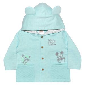 * Jacket includes; a three button snap closure, quilted side pockets and hood with 3D ears