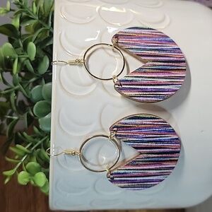 MICRO STRIPE WOOD AND RING DROP EARRINGS