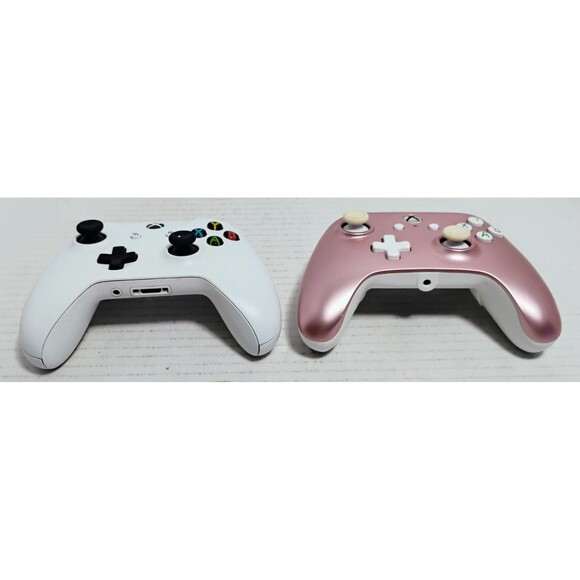 UP FOR SALE IS ONE LOT OF TWO XBOX ONE CONTROLLERS. LOT INCLUDES ONE WHITE OEM CONTROLLER THAT HAS BEEN TESTED AND WORKS. OTHER ONE IS A POWERA BRAND ROSE GOLD WIRELESS THAT HAS NOT BEEN TESTED.