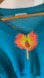 MICartsy Teal sweater with embroidered Orange/Yellow Flower shimmer thread.