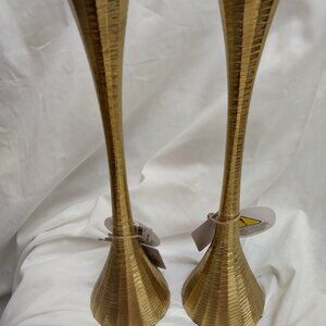 * MID CENTURY MODERN MATCHING CANDLE STICKS DESIGNED & CRAFTED IN INDIA GOLD new