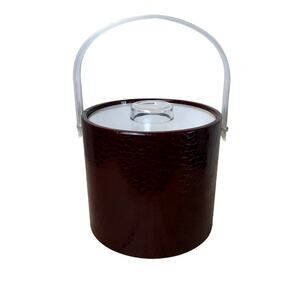 MID CENTURY MODERN VINTAGE BROWN VINYL ICE BUCKET WITH LID & HANDLE MADE IN USA