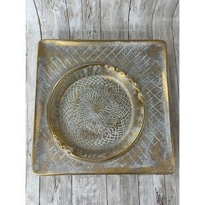 MID CENTURY STANGL POTTERY TRENTON NJ 9" X 9" AQUA & GRANADA GOLD ASHTRAY #3915