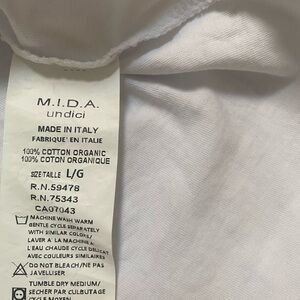 M.I.D.A Undici Men's White Short Sleeve Henley Organic Cotton T-Shirt Size L NWT
