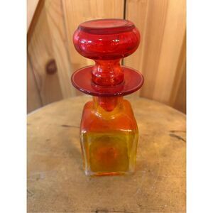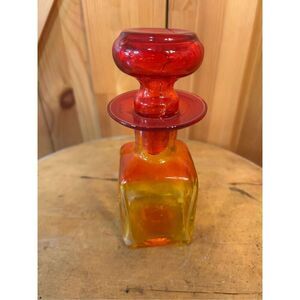 MID CENTURY MODERN Rainbow Glass ART GLASS AMBERINA DECANTER BOTTLE 6” minor imperfections in the glass see pictures (8557)