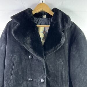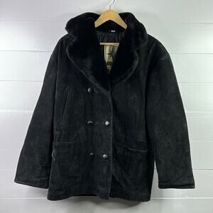 MIDDLEBROOK PARK Black Leather Suede Fur Peacoat Jacket Coat Size Medium