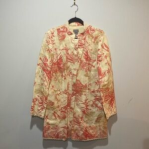 MIDI Length Top Coat in light Linen Lined Butterfly Print