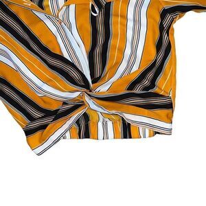 MIDNIGHT SKY Striped Long Sleeve Crop Top W/ Knot Embellishment Size Medium