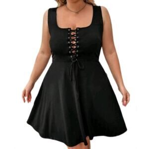 MIDNITE BLACK ☆ LACE-UP FRONT ☆ SKATER DRESS ☆ 5x ☆ NWT