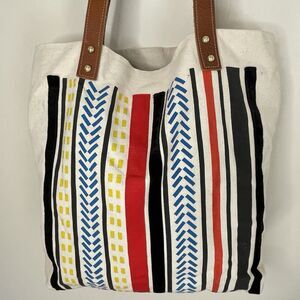 MIDORI Los Angeles Havana Striped Canvas Tote Bag Leather Straps African Print