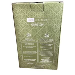 The MIDWEST CBK Lights In The Night Halloween Haunted House & Ghosts Night Light is a medium-sized electric night light with an orange light color and a glitter finish. This vintage-style night light features a Halloween theme, perfect for adding a spooky ambiance to any room. Easy to install and featuring a switch control style, this unique piece from the Midwest brand is an original collectible.