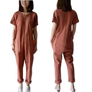Cut and sewn with a clay colored medium weight, brushed cotton twill that's soft and breathable. Very travel friendly, also perfect for nursing mamas.