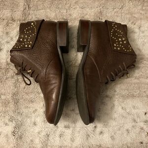 : : selling a very cool on trend preloved preowned MEIZKO 90s Style Fold Over Ankle Boots with Gold Stud Detail in good condition : :