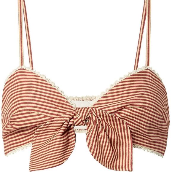 Tilly Crochet-trimmed Knotted Striped Woven Bralette Top