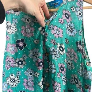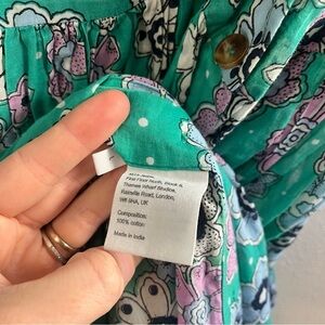 M.I.H. JEANS Leia Floral Cotton Gauze Sleeveless Button Down Midi Dress in floral mint green. Carried on Garmentory and Rent The Runway. Bring back 70s style in the Leia Dress by M.i.H Jeans in a stunning retro Floral Mint print. Slightly sheer. In a relaxed sleeveless silhouette and featuring contrasting wooden look buttons, a keyhole cut out back and functional side pockets, the Leia Dress is the perfect Autumn dress to pair with simple sandals and a sunny day.