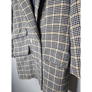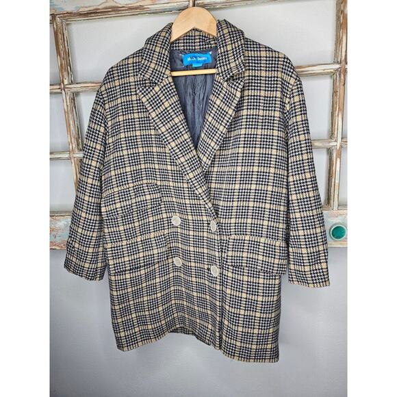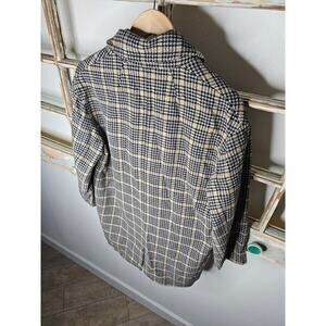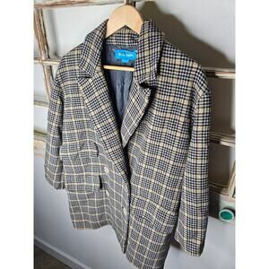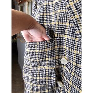 M.I.H Tweed Double Breasted Coat with Pockets size large. Three front flap pockets and 3/4 sleeves. This top measures 23" pit to pit and 31" in length and 19" sleeve length. No stains or imperfections. This jacket is lined and Comprised of a wool blend.