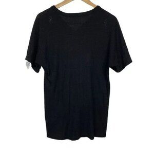 MIHOLL WOMEN'S BLACK BUTTON DOWN TIE FRONT SHORT SLEEVE WAFFLE SHIRT SIZE MEDIUM IN EXCELLENT CONDITION!