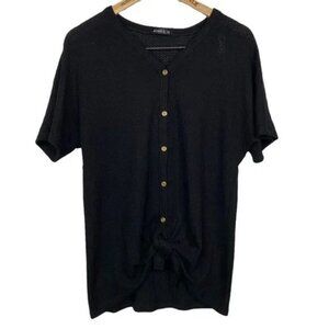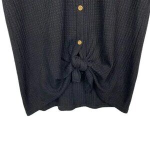 MIHOLL WOMEN'S BLACK BUTTON DOWN TIE FRONT SHORT SLEEVE WAFFLE SHIRT MEDIUM-EUC