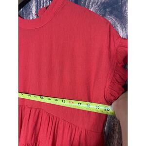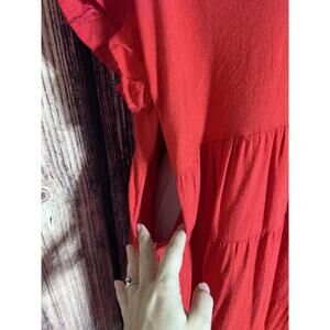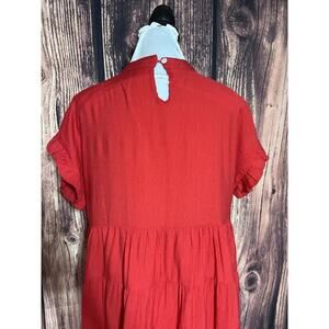 MIHOLL Women Sz L Red Burgandy Summer Casual Ruffle Loose Tiered Babydoll Dress