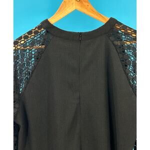 MIHOLL Women's Black Ribbed Knit Top Long Lace Sleeve Back Zip Size XLarge