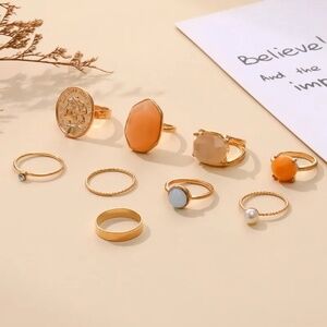**MIKA* 9-Pc Gold x Multicolor Fashion Rhinestone Ring Set