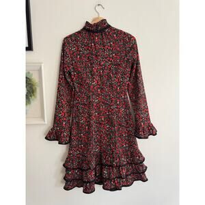 MIKAEL AGHAL Red Black Long Sleeve Mini Dress Size 2
